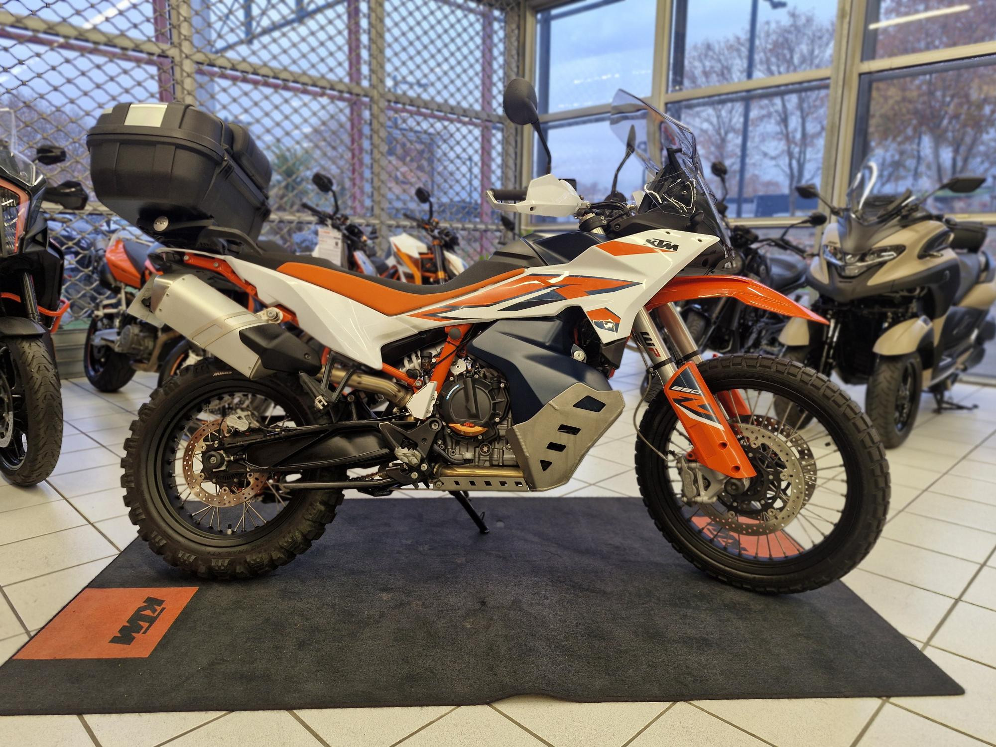 Equipement optionnel : TECH PACK, Régulateur de vitesse, QUICKSHIFTER+, MSR Régulation du patinage du moteur, RALLY PACK, Mode de conduite « Rallye », Réglage du traction control sur 9 niveaux, Réglage de la réponse des gaz. Kit rabaissement KTM, Bulle haute fumée, repose pied Factory Racing, catalyseur sport Arrow + protection, top case Givi Trekker, Tampons de protections de fourches et de bras oscillant, béquille centrale, grille de protection de radiateur, pares carters, pares mains enduro, sabot alu renforcé, leviers rabattables KTM, couronne bimétal.